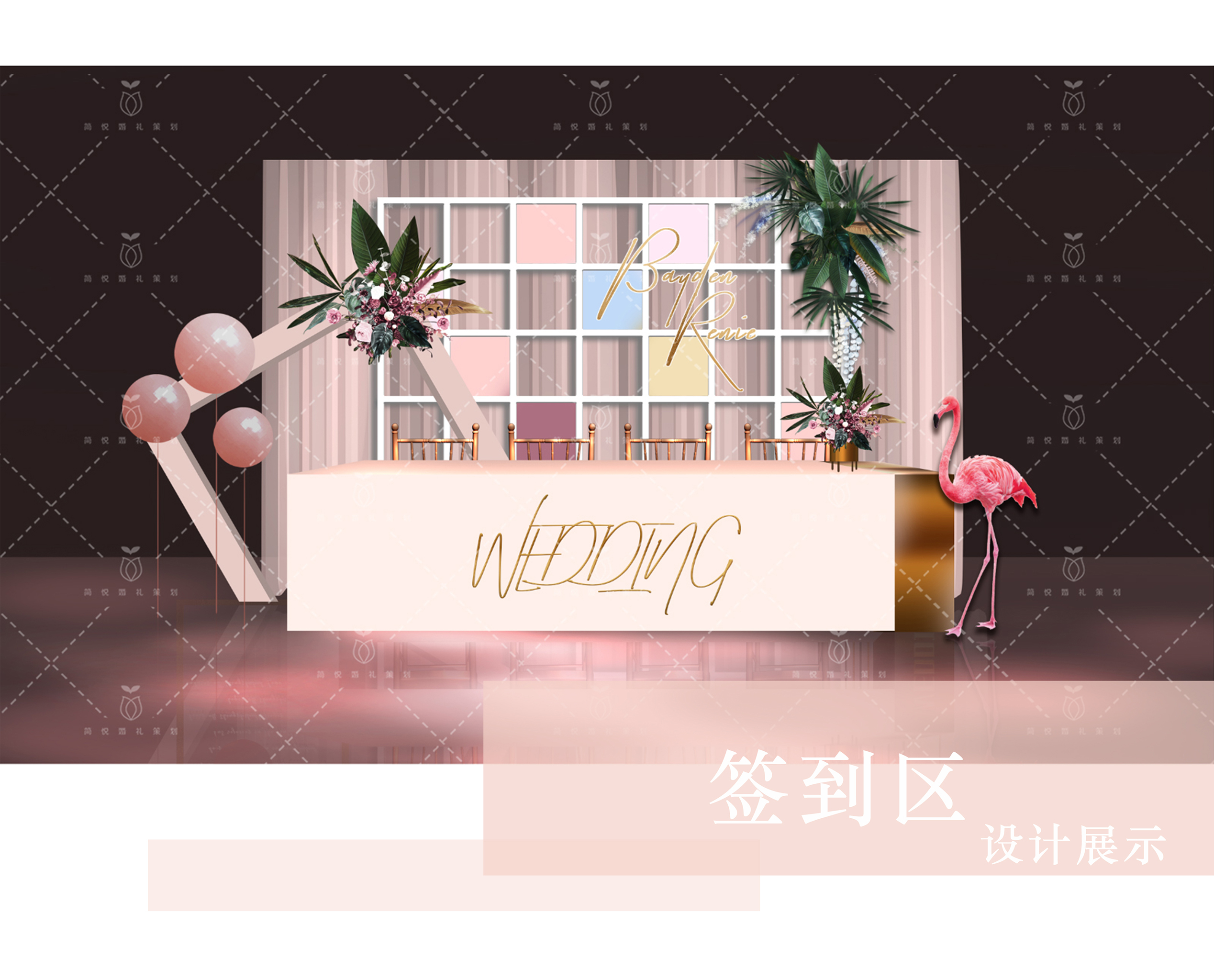 1、签到区时尚立体背景搭建6×3米以内