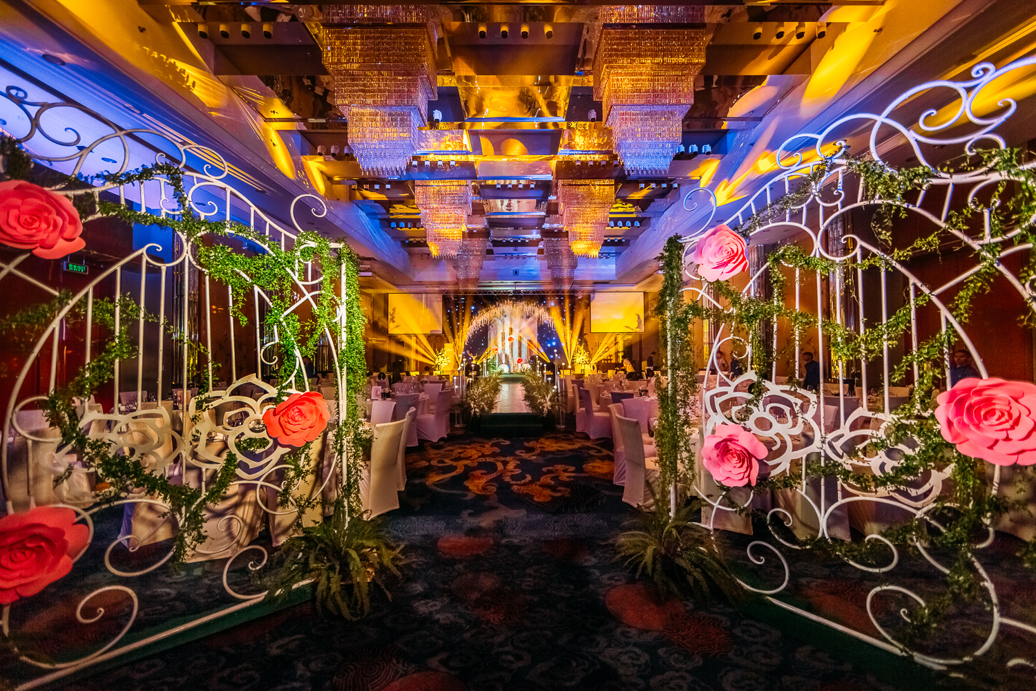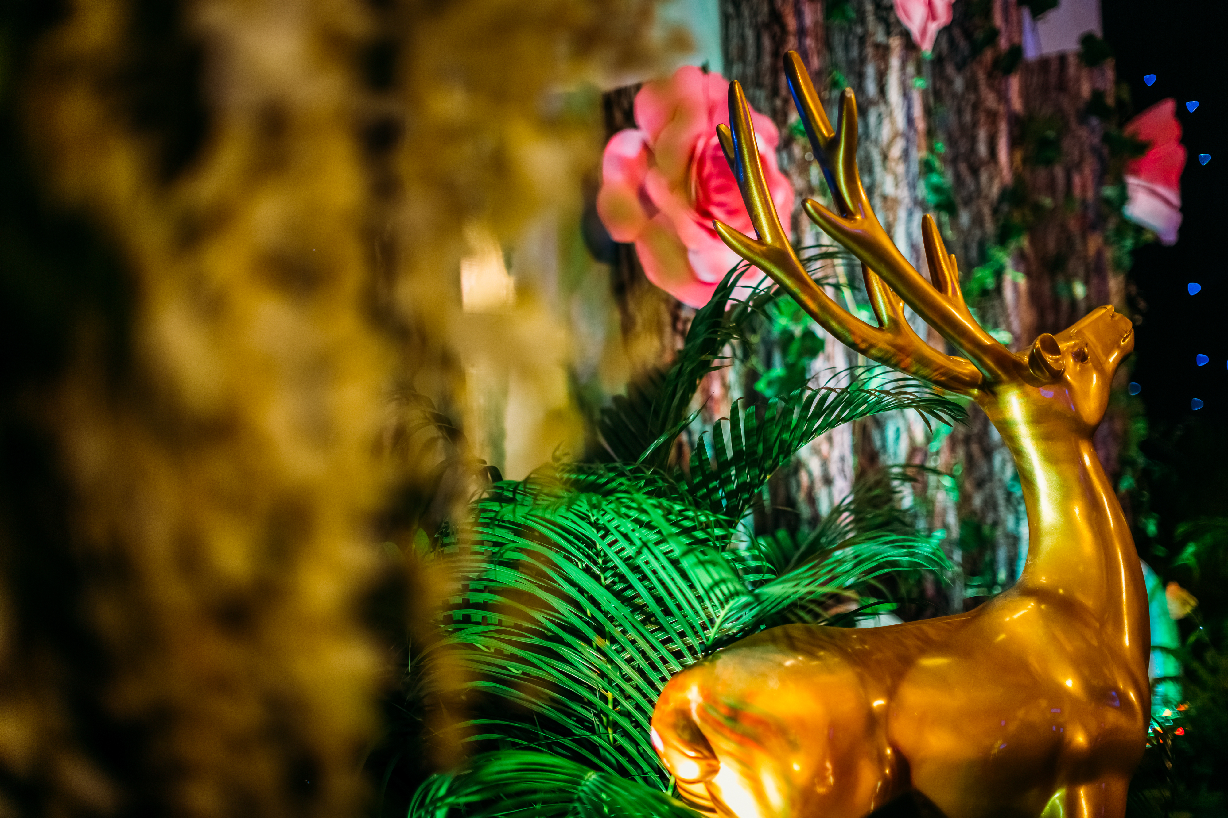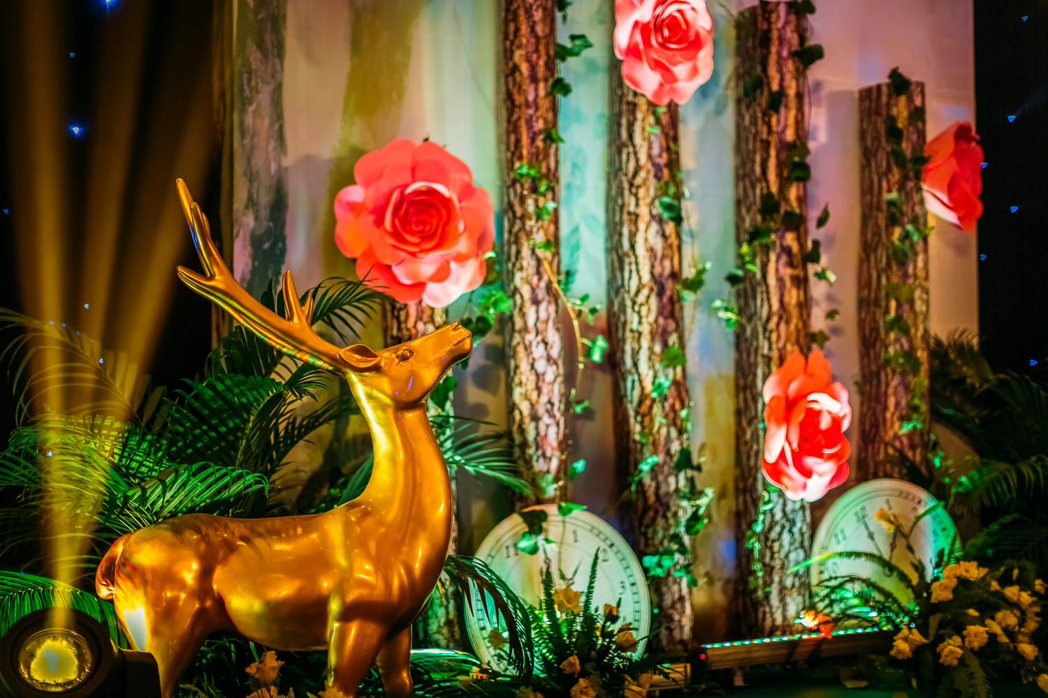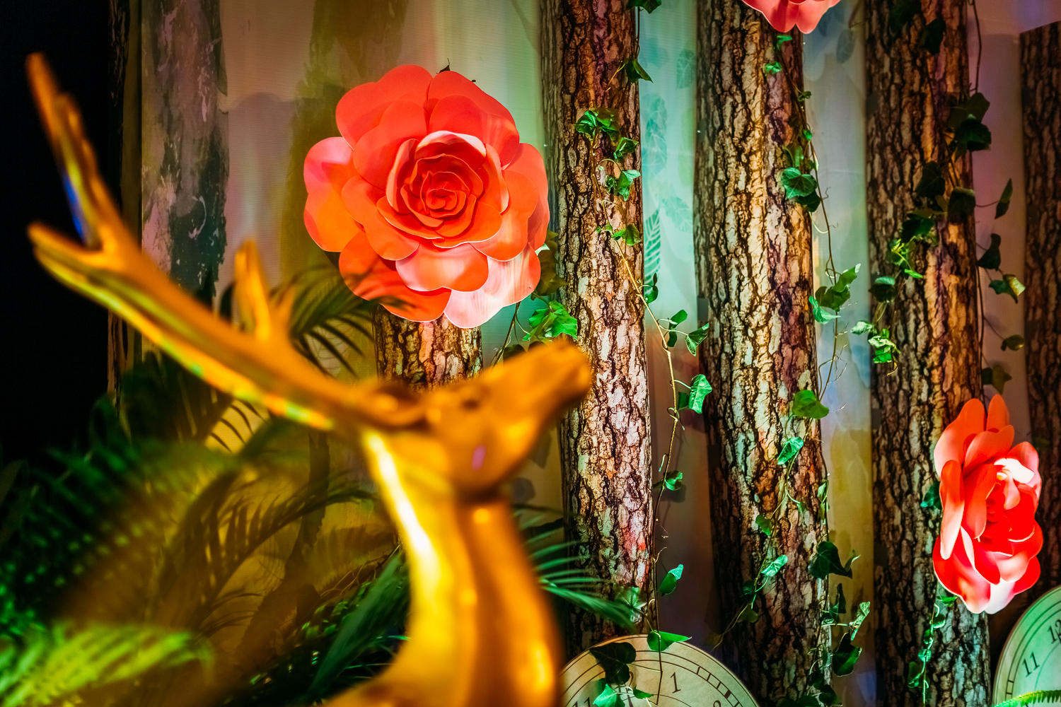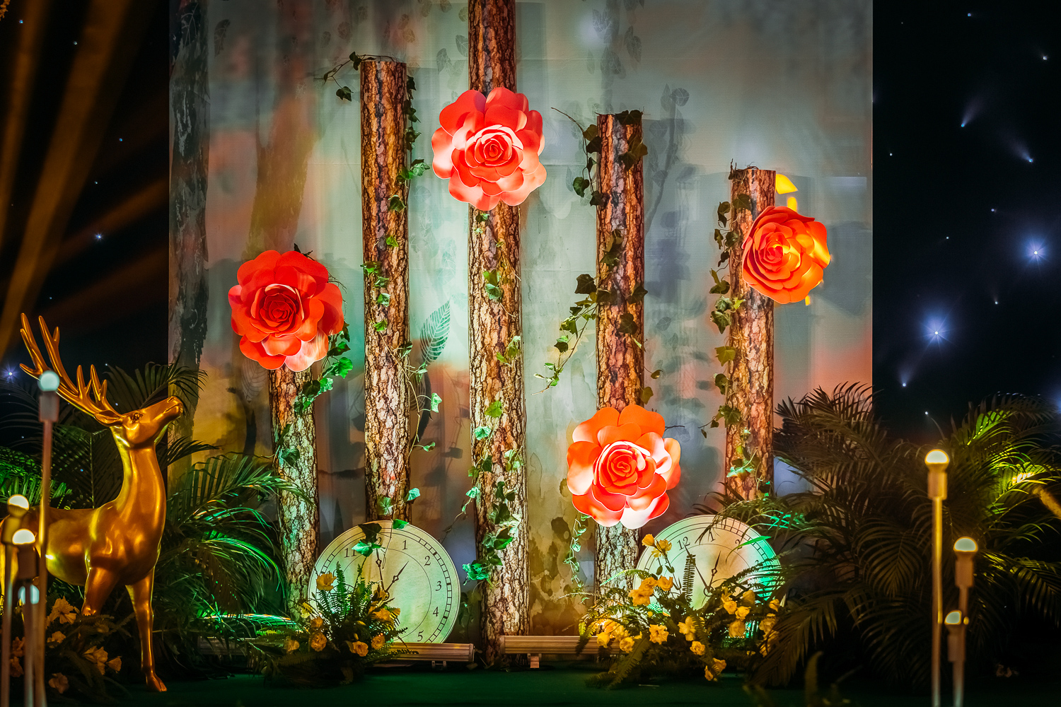 主题合影背景搭建 1项(布幔吊顶+KT板造型搭建+主题摆件)