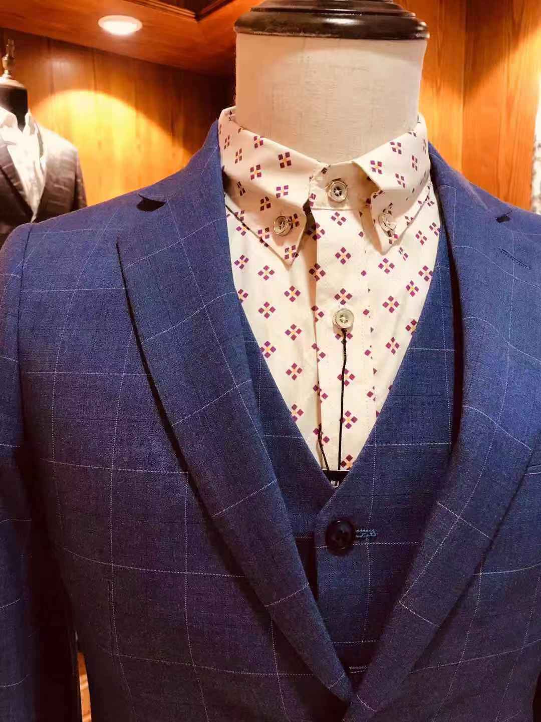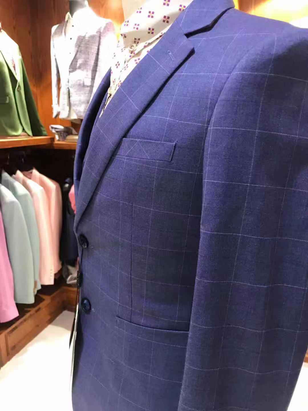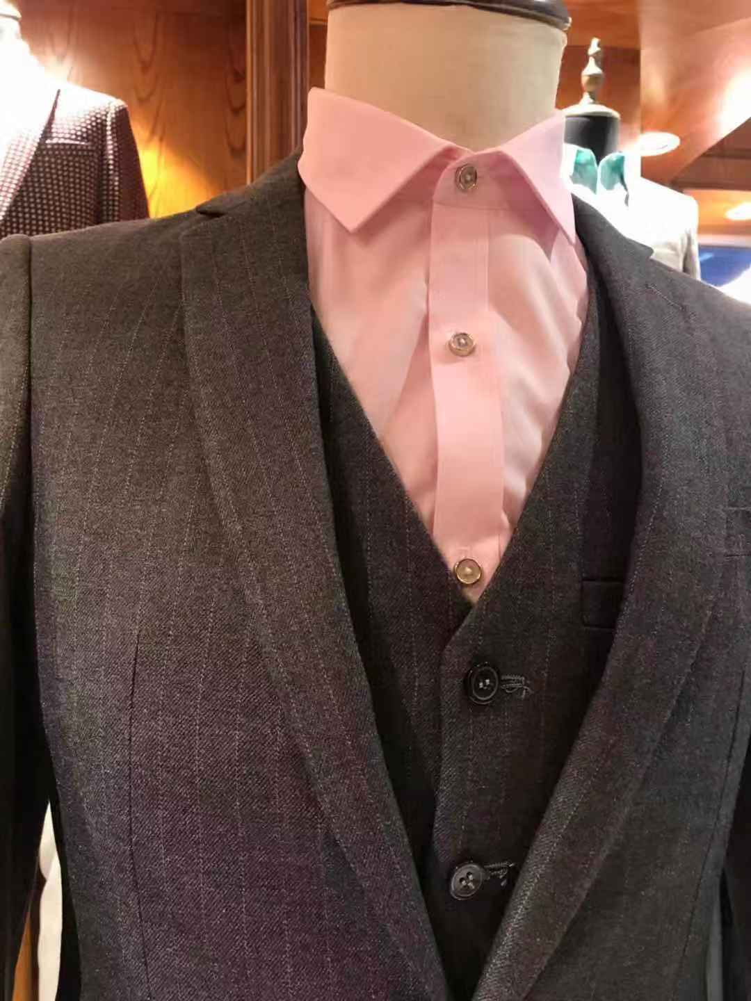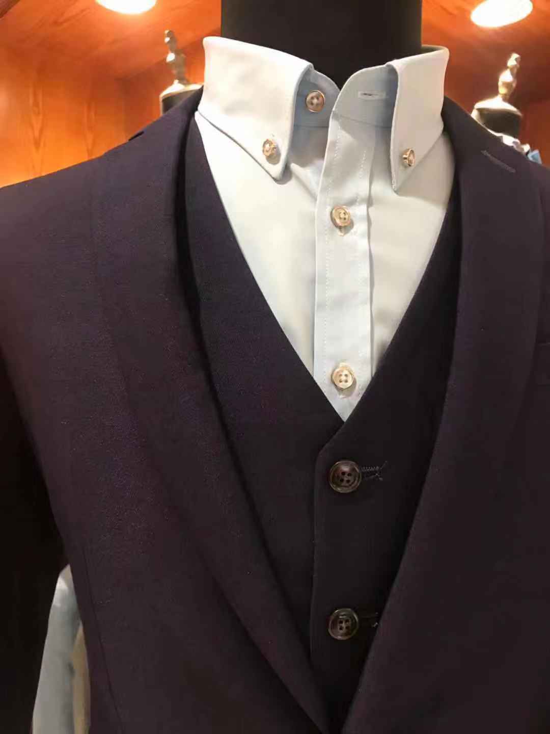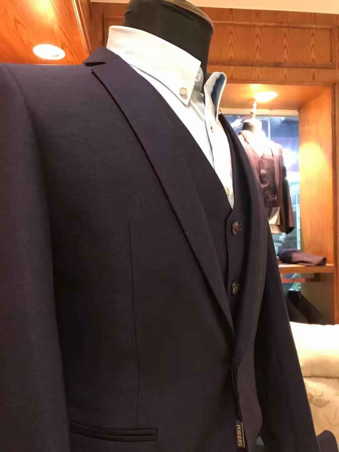 此套餐包羊毛料抗皱系列高档西服+西裤+马甲+衬衫 (注:各别款式因款式设计原因无马甲)