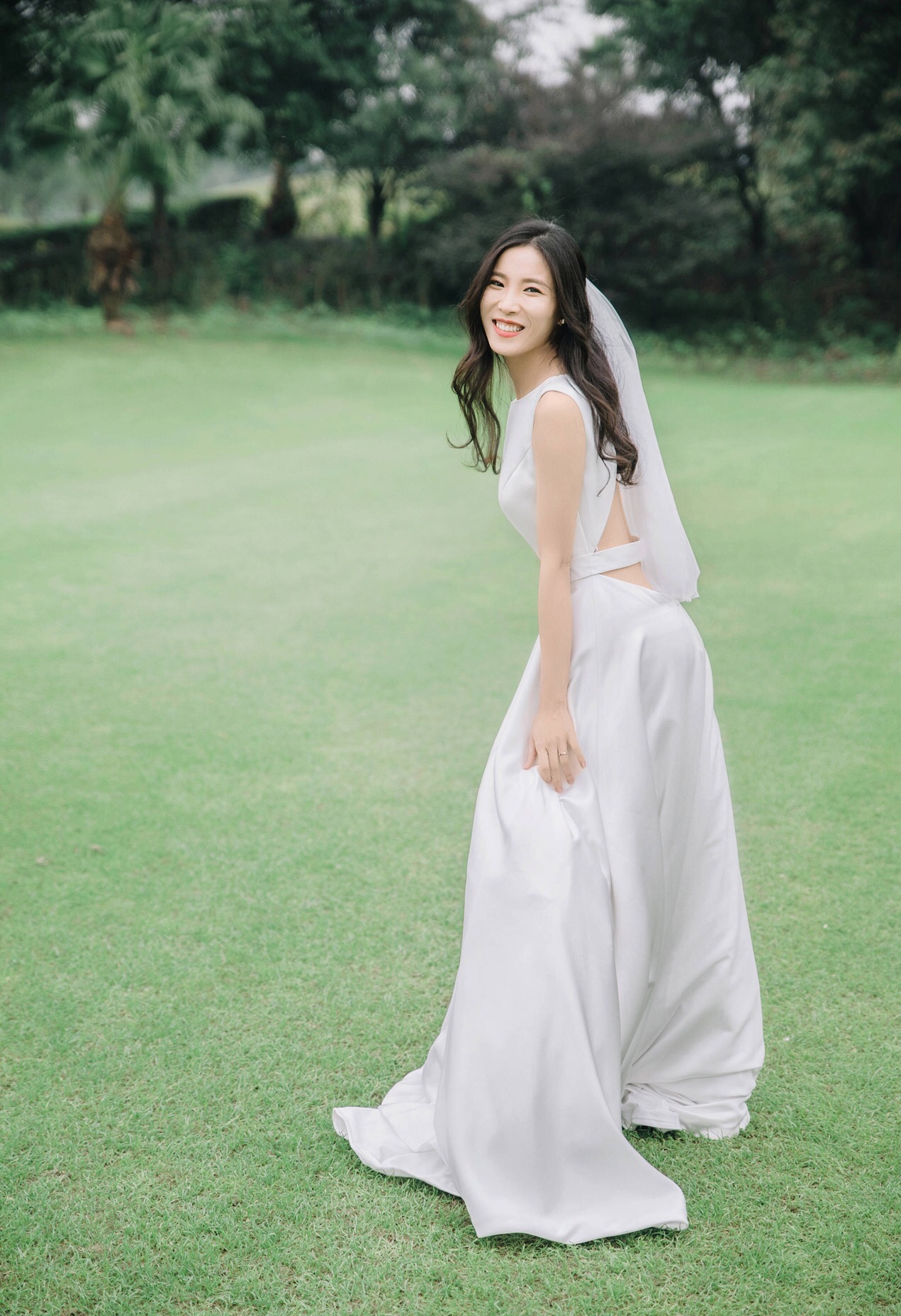 不规则波浪型裙摆仪式主纱