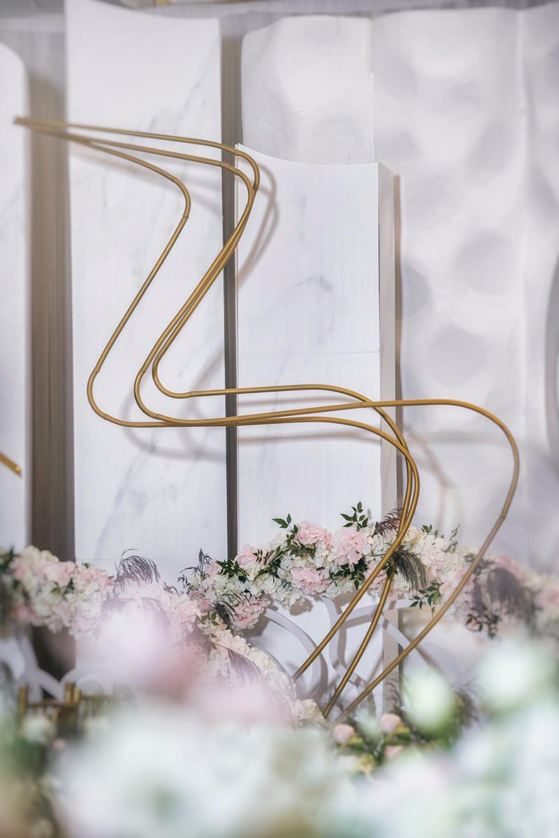 线条装饰虽然看似不起眼,但是却总能起到意想不到的作用,素雅的背景在线条的点缀下立刻就告别单调,变得精致了,犹如点睛之笔,去掉繁琐矫饰,带我们进入纯粹清爽的婚礼空间。