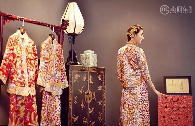 手工刺绣龙凤褂 潮褂大五福*1 南瓜车Crystal系主纱*1 南瓜车Crystal系敬酒服*1 赠伴娘服六套-免租权