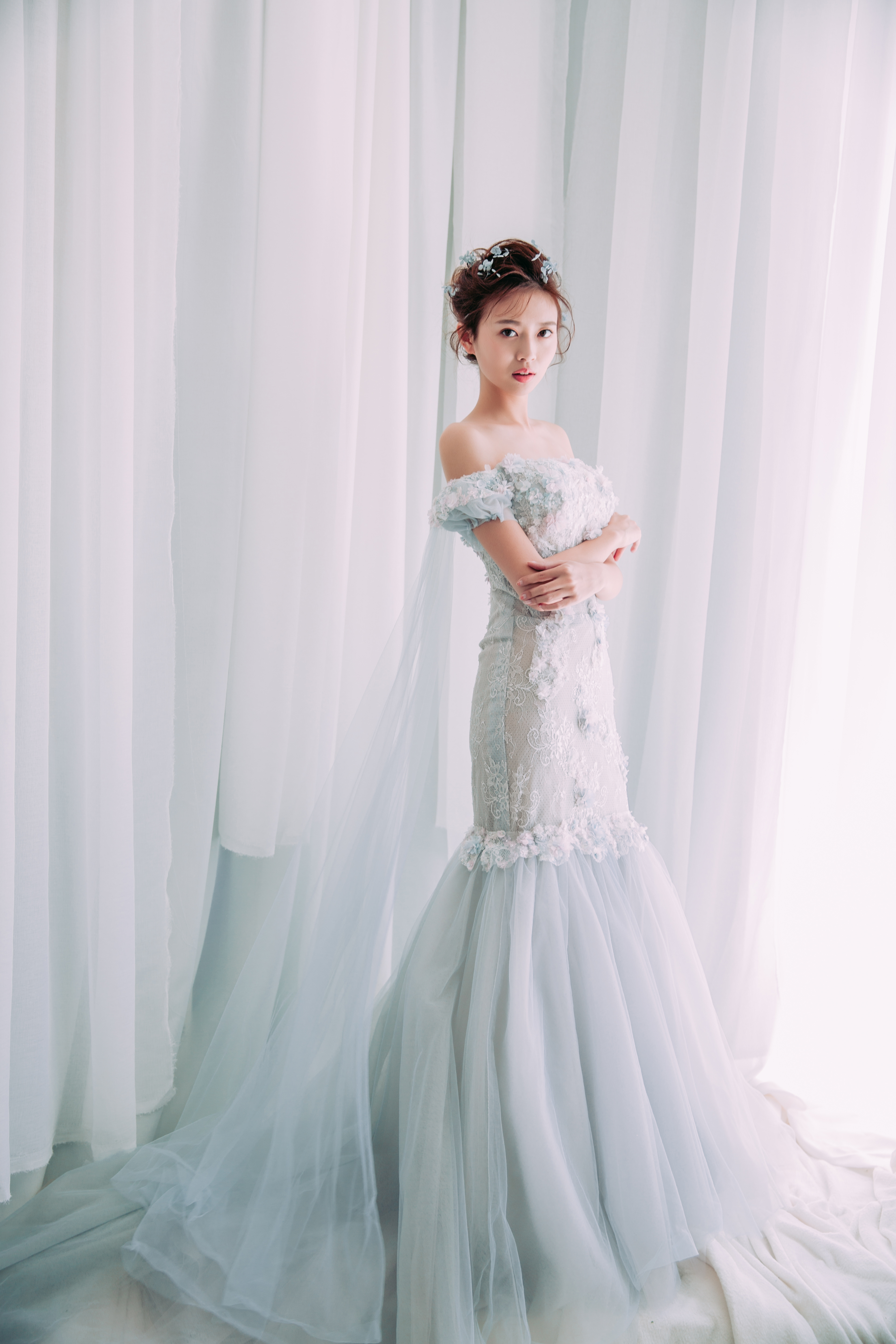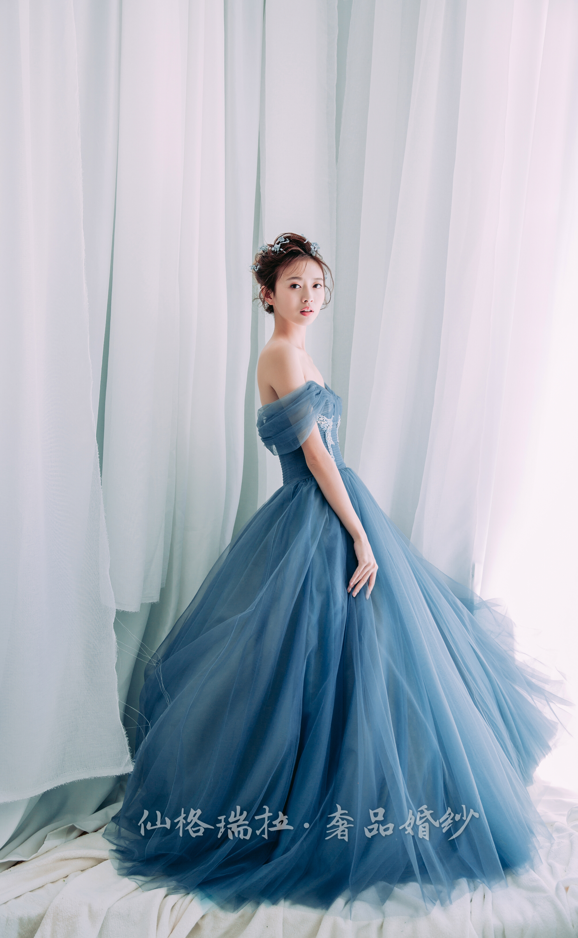 蓝色梦幻婚纱礼服七件套