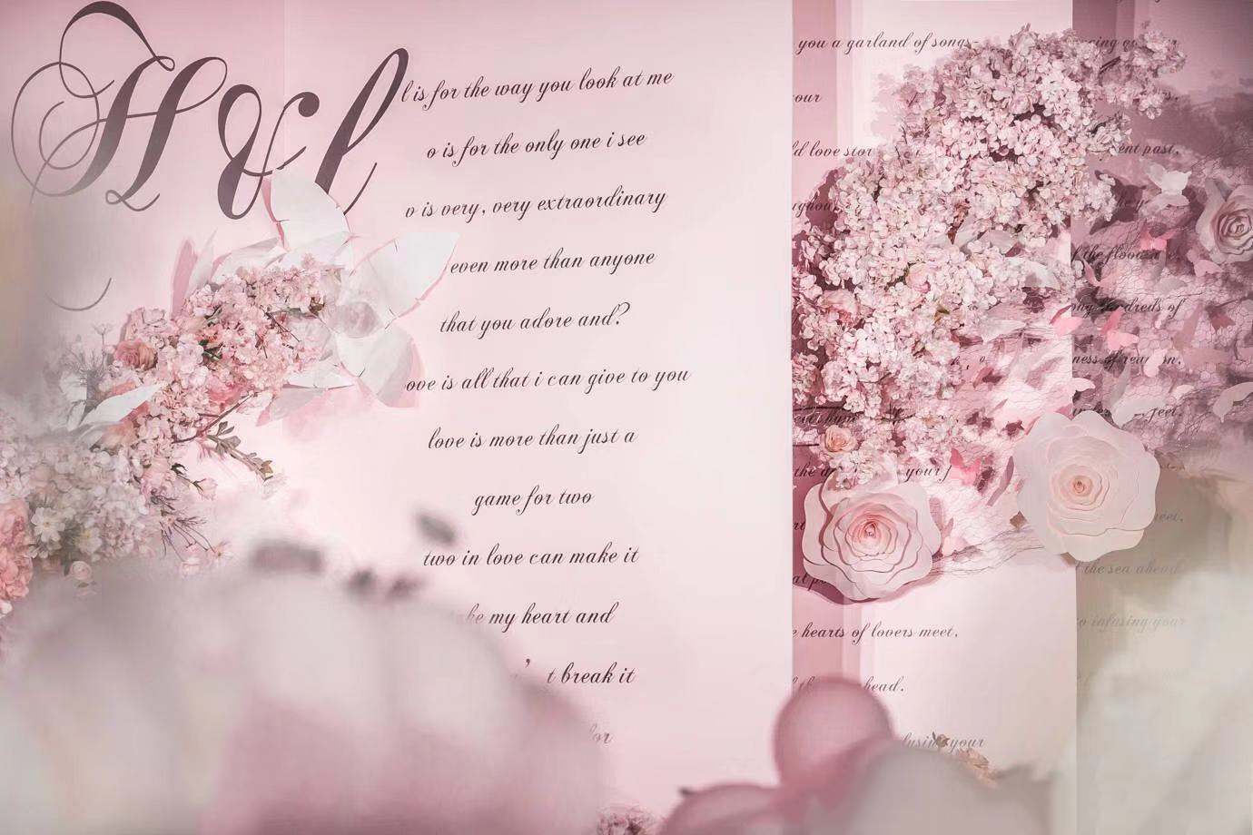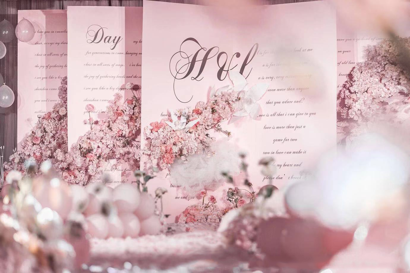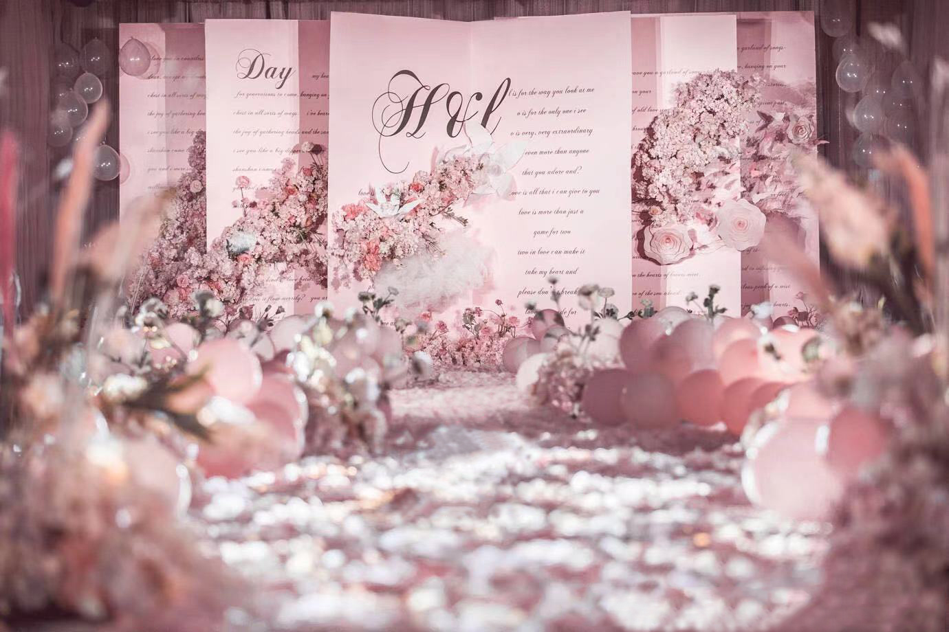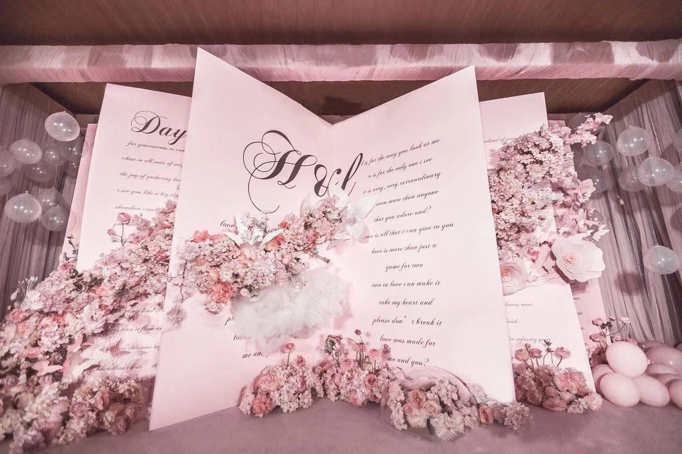 【诗亚图婚礼】唯美●情书 这场婚礼的新人想要婚礼有甜蜜的感觉,整体的婚礼色调用粉色为基调,背景板做成情书的模样,是我们彼此最开始的喃语,每一字每一句都是我对你的爱意。遇见你之后,事物都好像披上了浆果的壳,但你是这个世界上,所有浆果里,最甜的那一口。 ​​​​
