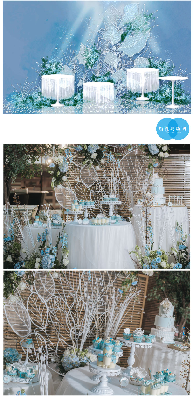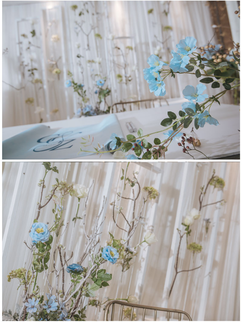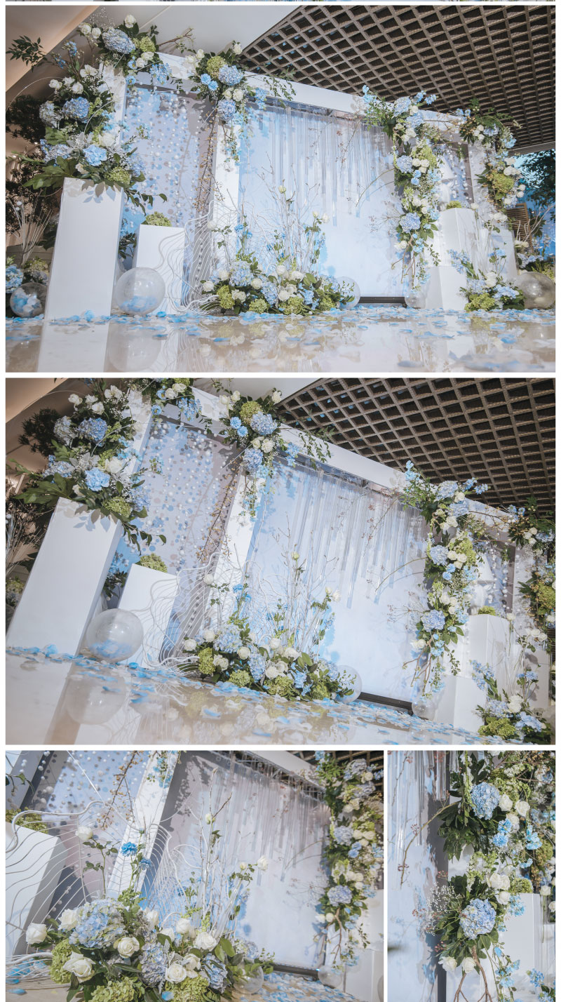 迎宾签到区:定制风格摆设道具 套餐内的方案构思、场地布置、喜好要求、报价明细等婚礼细节,我们都将为您专属定制,会根据每一对客人的喜好要求结合场地情况和预算做整体方案及报价。
