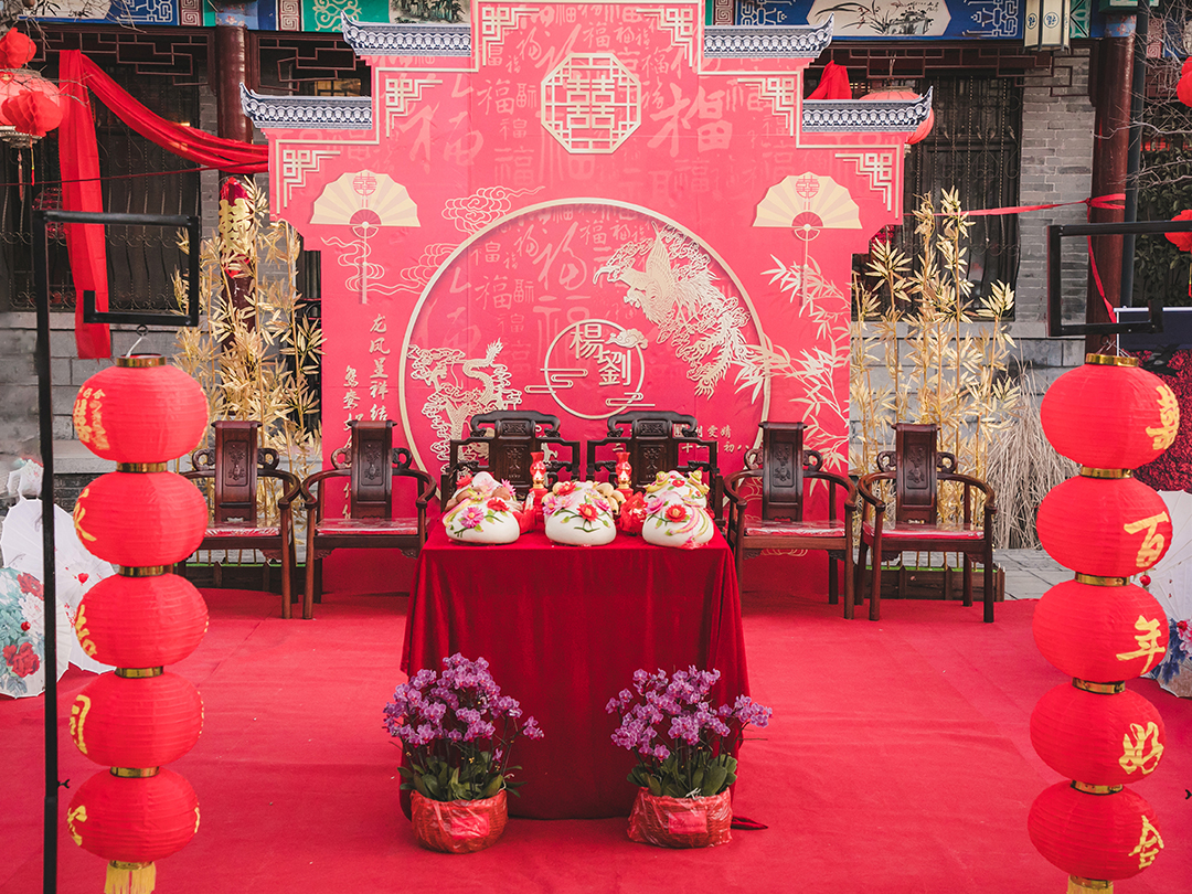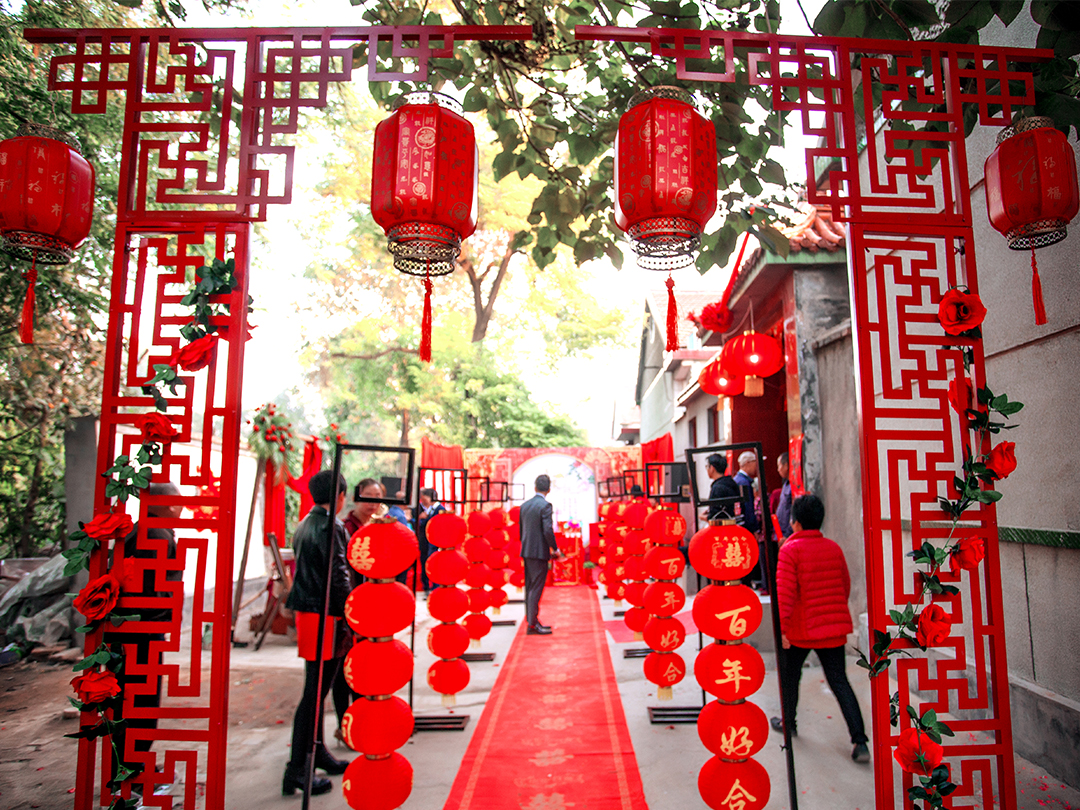 7/仪式区:中式铁艺路引+喜庆四连灯笼10组。