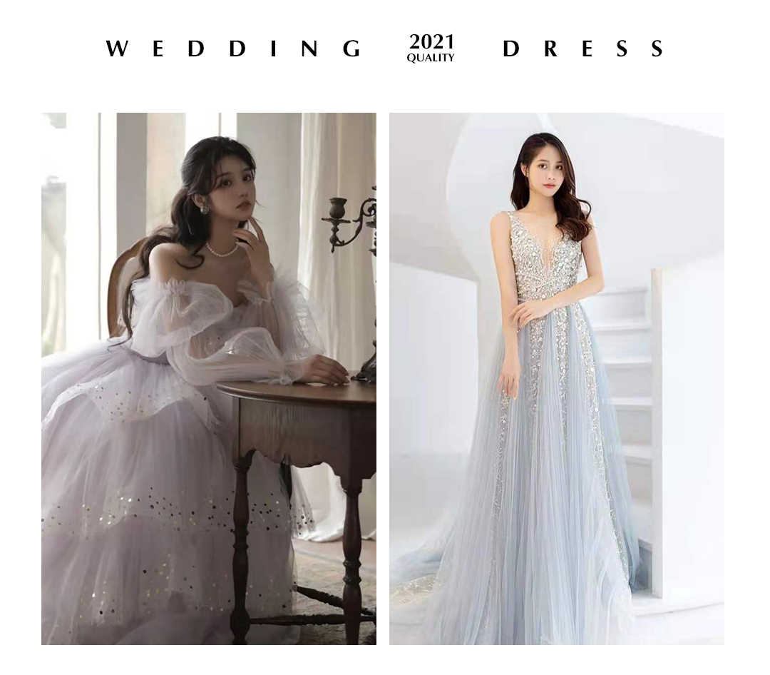 蓝色梦幻婚纱礼服七件套