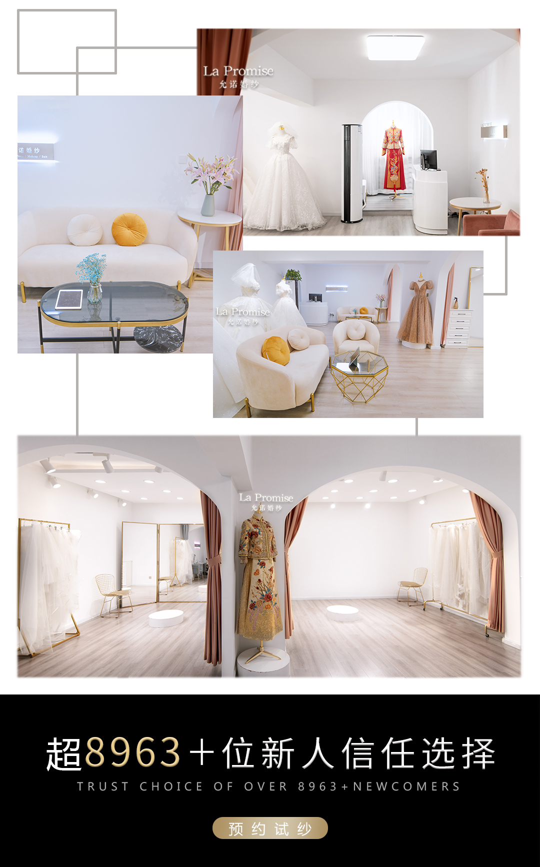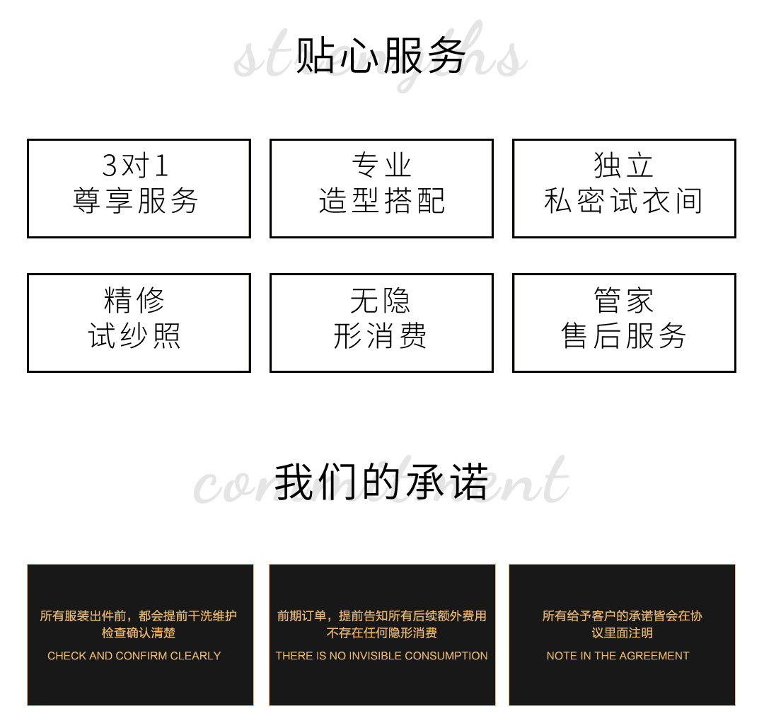 亲爱的,允诺婚纱为了保证服务质量 提供独立私密的超大试衣间 专属礼服搭配师 全程3对1服务