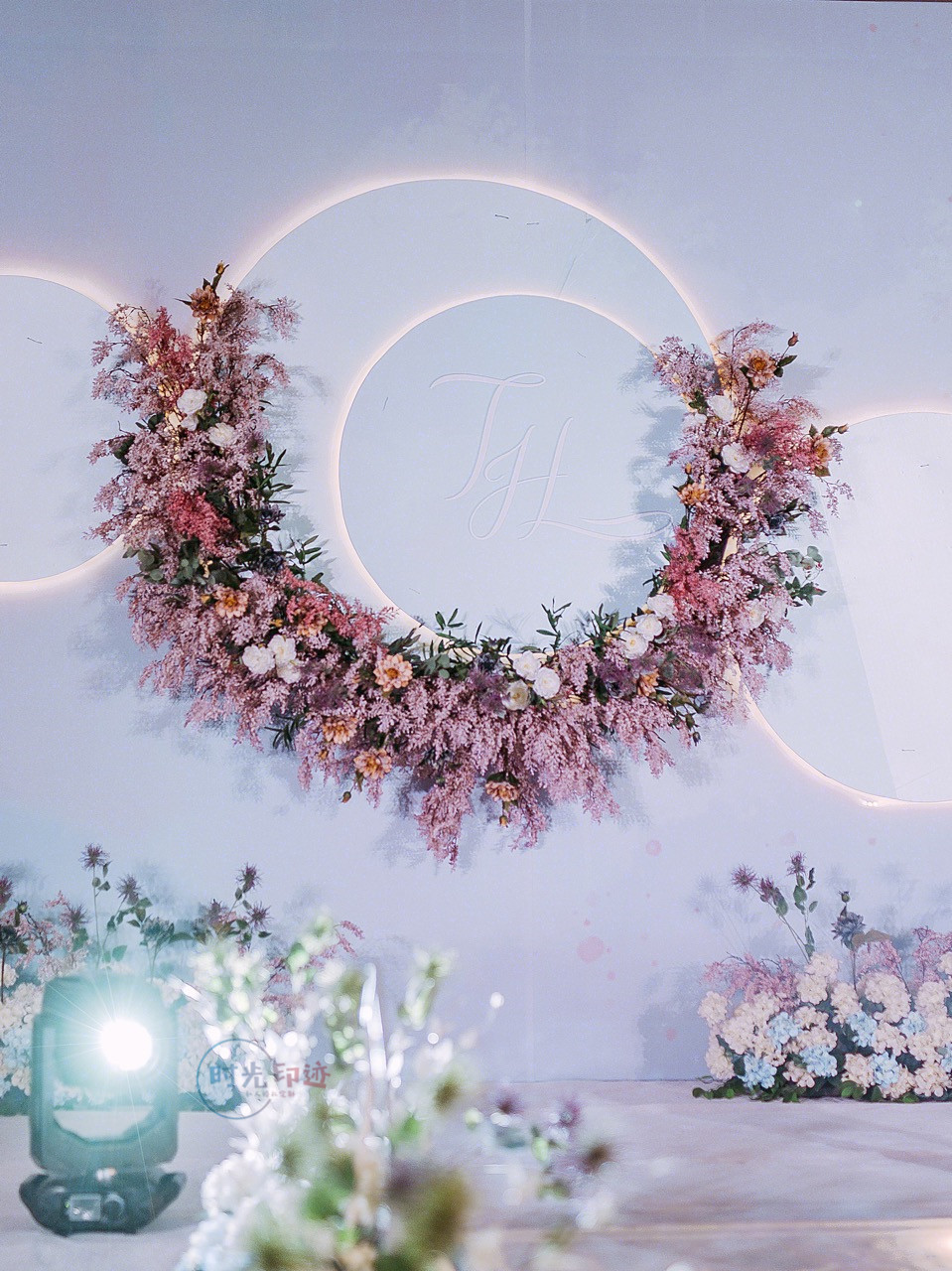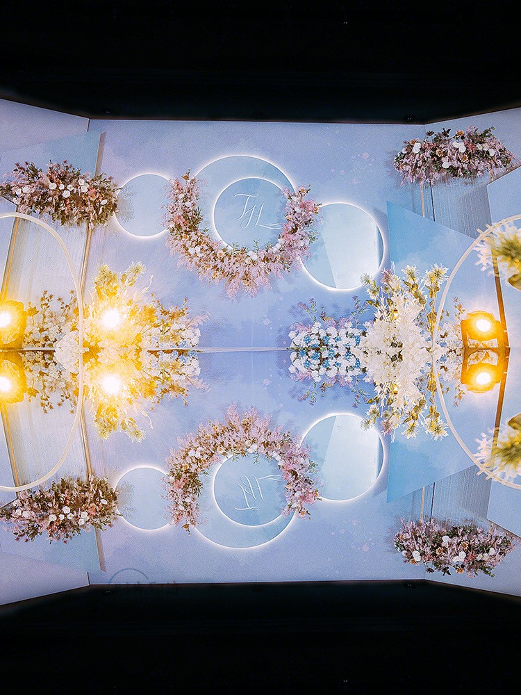 一场婚礼最重要的就是人物光,先保证人物的着光之后我们再去考虑环境光,环境光是用来渲染环境的,也就是整个现场的灯光色彩,就例如帕灯、图案灯、摇头灯等等。