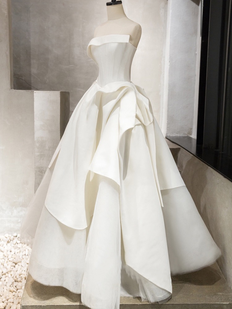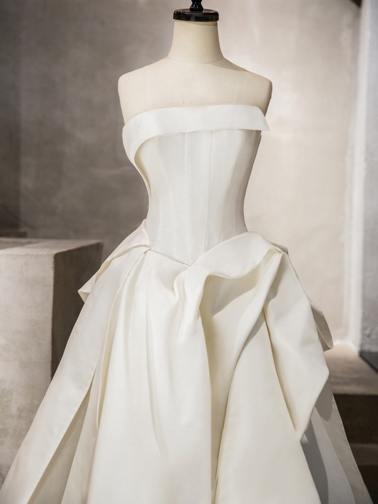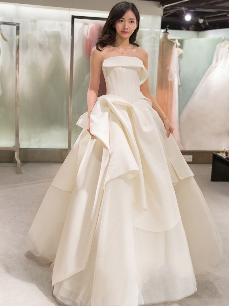 长沙天鹅婚纱礼服 时尚缎面一字裤大拖尾婚纱礼服